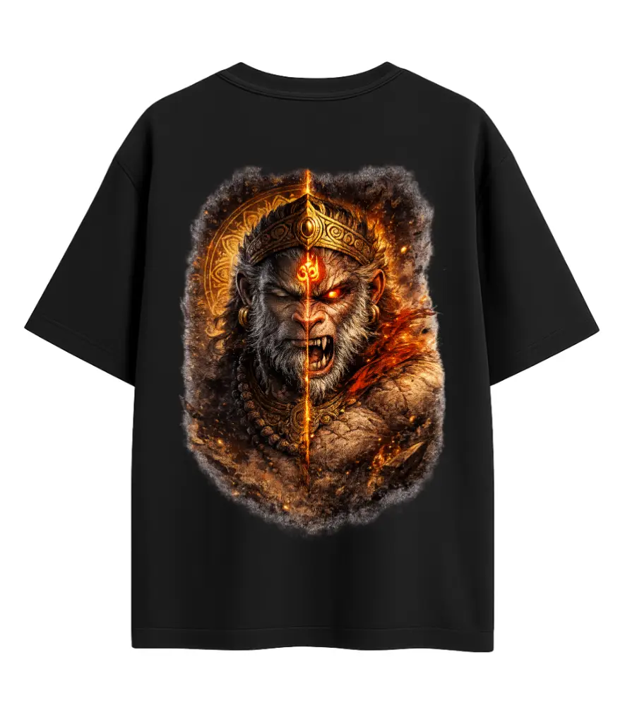 This isn’t just art — it’s energy. A fierce avatar of Hanuman, split by flame, made for those who carry strength and restraint together.