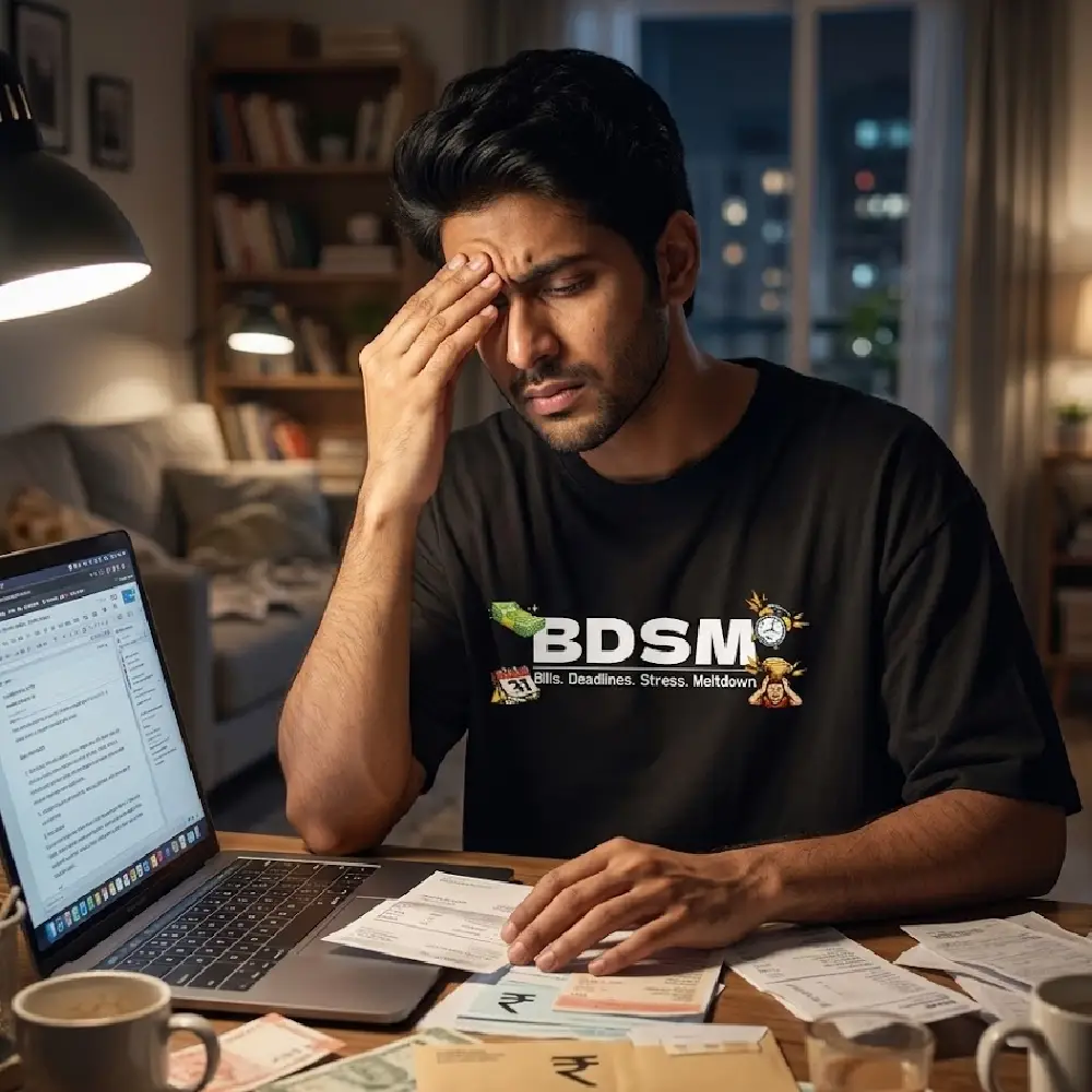Deadlines hitting, bills piling, sanity slipping? Welcome to adulthood in one brutally honest tee.
