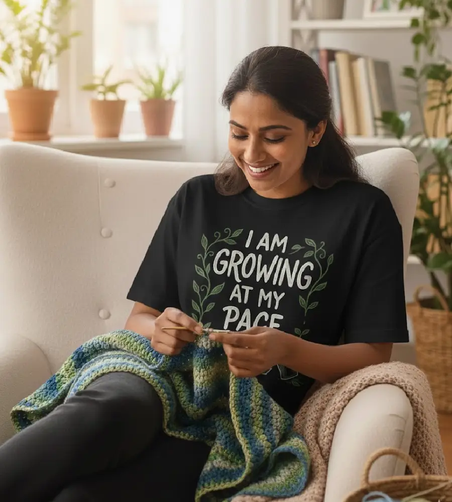 Growth isn’t a race. A wholesome, gardening-inspired graphic that reminds you to nurture your own progress without comparing it to others.