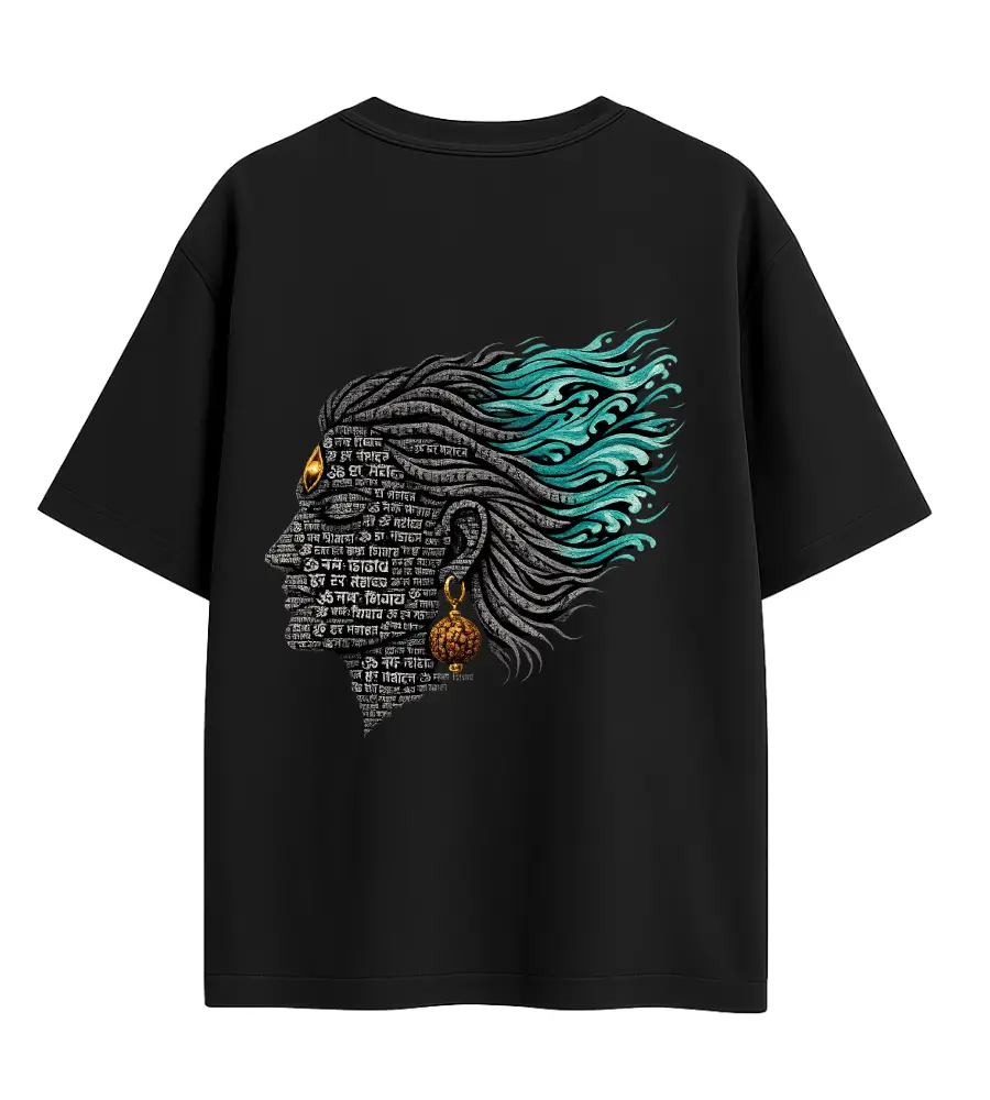 Scripture meets silhouette. A bold spiritual statement piece capturing the essence of Mahadev.