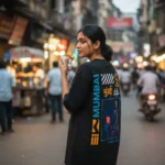 The city that never sleeps. This electric back-print captures the chaotic charm of Mumbai nights. From the local trains and cutting chai to the iconic juice centers.