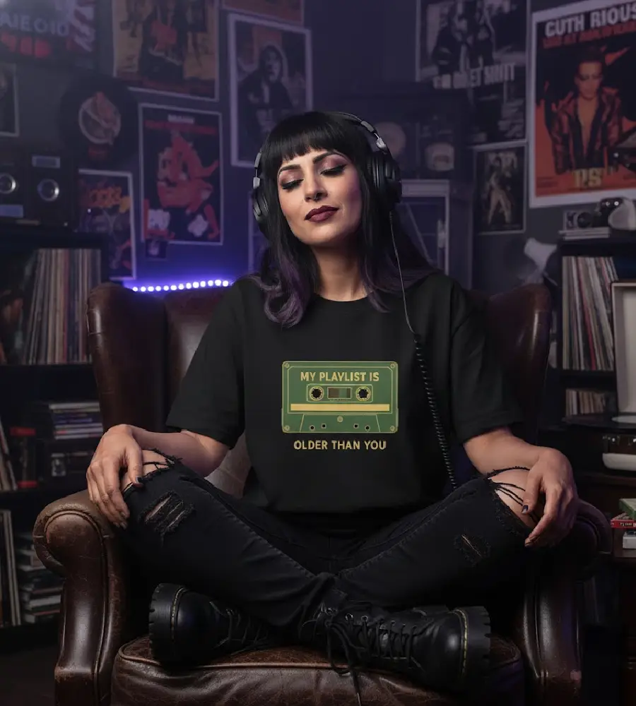 Respect your elders (and their music). Establish your superior taste with this retro aesthetic tee that hits the perfect note of nostalgia.