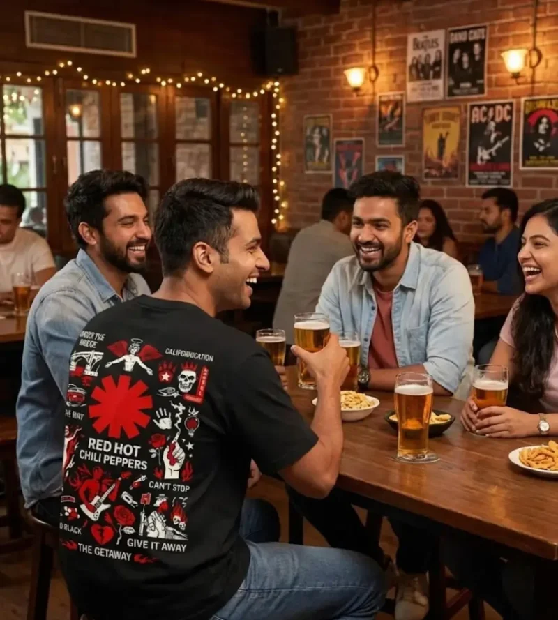 Bring the California funk to your wardrobe with this Red Hot Chili Peppers tee featuring their iconic asterisk and Californication references. The striking red graphics on an oversized fit make this the perfect choice for showcasing your love for the rock legends.