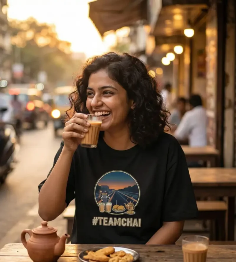 Chai lovers unite with the #TeamChai tshirt. Chai is an emotion and wear it with pride!