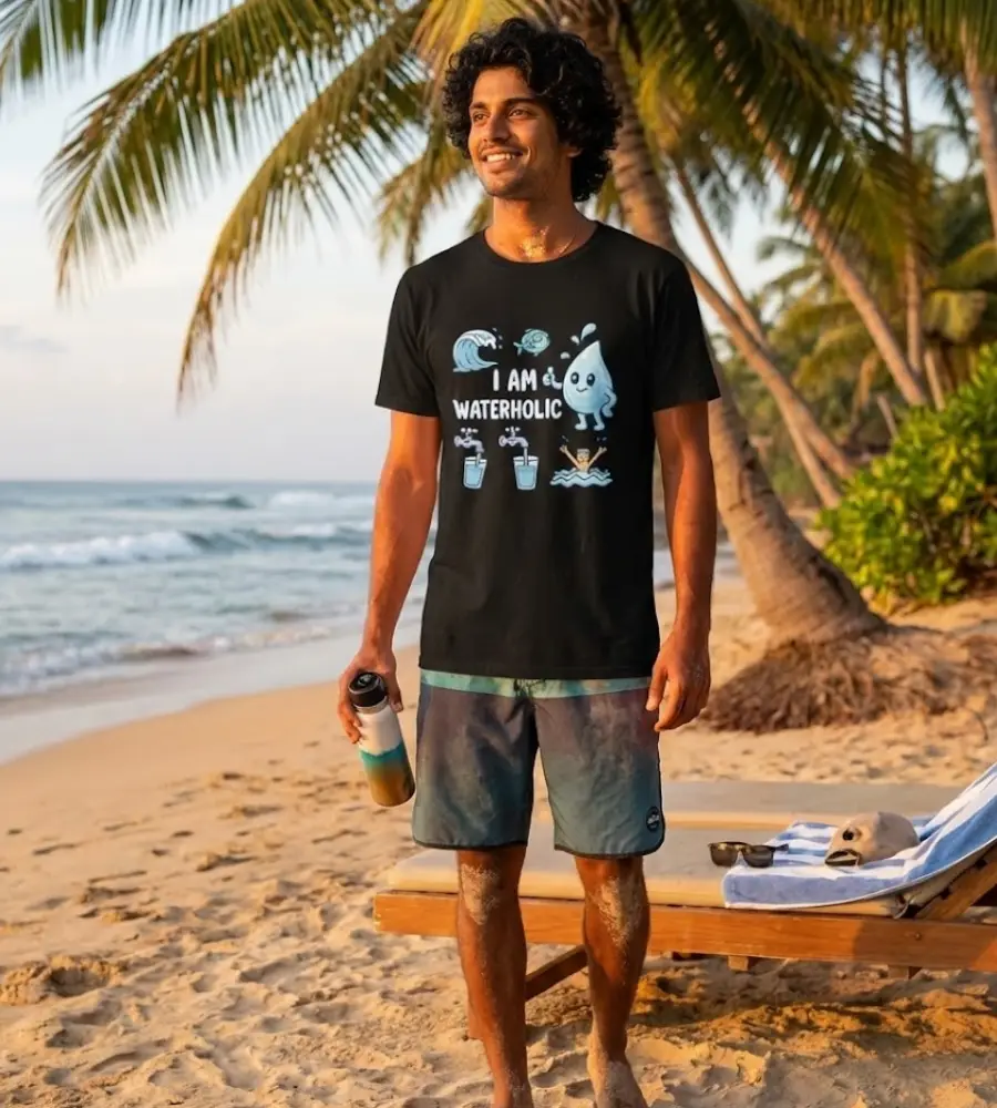Stay hydrated, stay happy. A fun, cartoon-style tribute to the love of H2O, featuring a happy water drop and everything cool and refreshing.